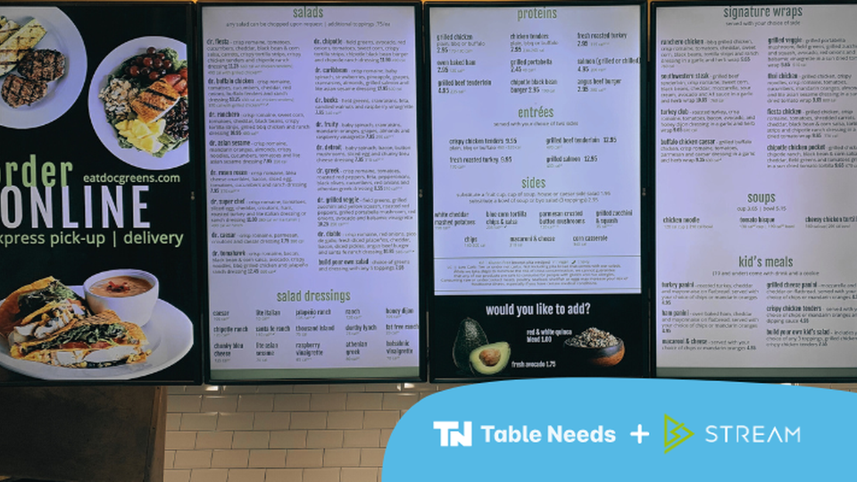 TABLE NEEDS PARTNERS WITH STREAM TO PROVIDE DIGITAL MENU BOARDS